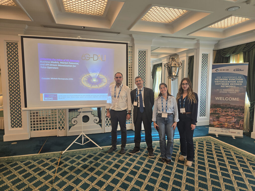 The 6G-DALI project, the first EU enabler platform for automated Artificial Intelligence solutions for 6G networks, continues to actively advance its dissemination strategy. It successfully participated in theIEEE Conference on Network Functions Virtualization and Software-Defined Networking (#IEEE_NFV_SDN_2025), held in Athens, offering an excellent opportunity to showcase the project’s first scientific contributions and initial results.